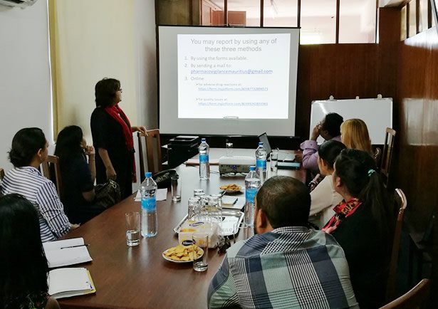 Pharmacovigilance Training by Mrs Sarita Boolell, Principal Pharmacist, Pharmacovigilance Unit, MOH at our office.